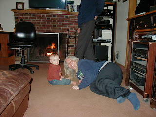 Back past Shannon’s sister’s house, and right before we get there, I see a dog I’ve never seen before. Hobie doesn’t see it. It’s loose. No owner in sight. I again positioned myself between Hobie and the other dog, who had by that time gone out-of-sight. I shortened Hobie’s leash so he was right beside me, but kept it slack so as not to have any tension on the leash. New-dog, whose name I found out a few minutes later is Riley, was up on the porch of the house with his owner. When he spotted us, and Hobie spotted him (her?) Hobie perked up and I was not making eye contact with Riley or his owner, but I heard the woman say, “AHCK!” then, “No, Riley!” Well, of course Riley gave her the paw and came out to the road to greet us. Riley and Hobie were perfect gentlemen — great body-language, ears up, tails up, happy faces, sniff, sniff, sniff. Riley’s owner was unhappy that Riley had approached us. Riley wanted to follow us! I said, “C’mon Hobie, we’re going home,” at which point Riley fell in line and was going to join our pack! I saw what was happening and immediately made Hobie stop, resulting in Riley stopping. Riley’s owner was able to grab Riley’s collar and bring him back home. And Hobie and I went back to ours, where Hector was waiting, happy to see us. I took Hector outside in the back yard for a quick stroll, just me and Hector, and the new ball he got for Christmas.