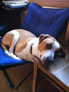 But that’s not what I’m here to tell you about today, oh no, that’s not it at all. It’s the blue chair! Once the trundle bed (ha ha) was banished to the laundry room/cat bedroom/icky basement, I went in search of option #2 for Cooper, who was still recovering from aforementioned amputation, but was destined to arrive on our doorstep any minute. I had recalled seeing some pictures of him, when he still had four legs, sitting on a lawn chair… he seemed to have an affinity for the things (still does) so I figured I’d find something similar, but possibly for indoor use.