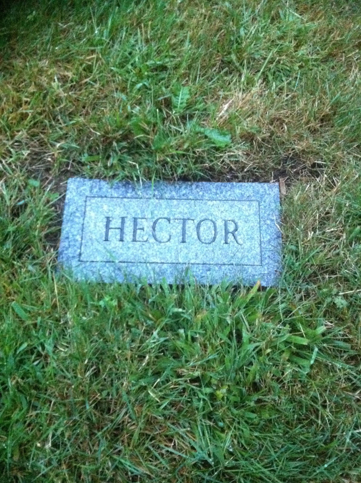 After I said a few words (“Hector! Who pooped on your memorial?!” and “I miss you, buddy, I think about you every day.”) I went back into the house, made an iced coffee, and logged in to the computer wondering if I would post anything about this anniversary. First thing I saw in my email was this article from Cesarsway Magazine about pet memorials. There are no coincidences.